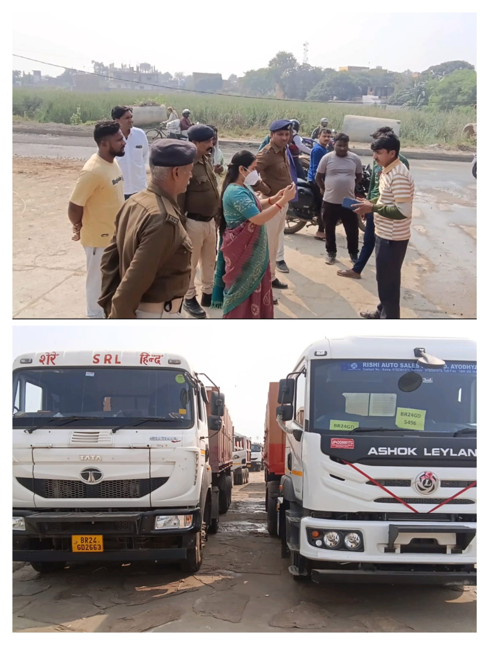 पानी टपकते बालू परिवहन कर रहे छ: गाड़ियां थाना प्रशासन की गिरफ्त में अग्रिम कार्यवाही जारी