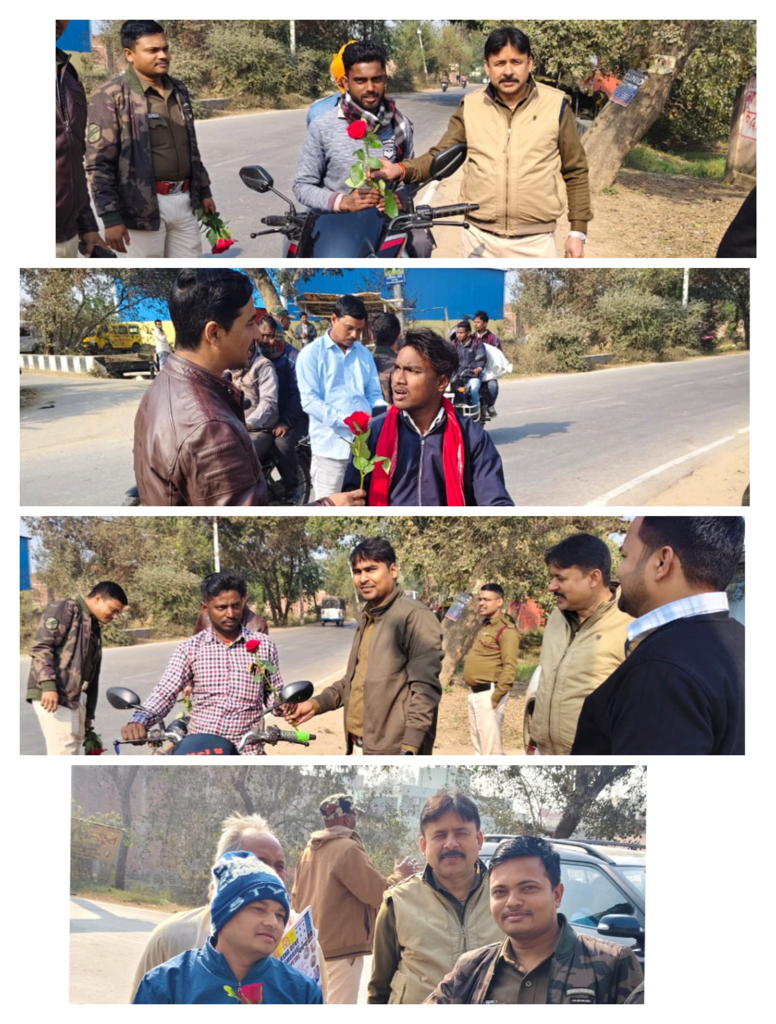 कैमूर में 'गांधीगीरी' से सुधरेगी ट्रैफिक व्यवस्था: बिना हेलमेट चालकों को पुलिस ने थमाया गुलाब, चालान की जगह दी सुरक्षा की सीख