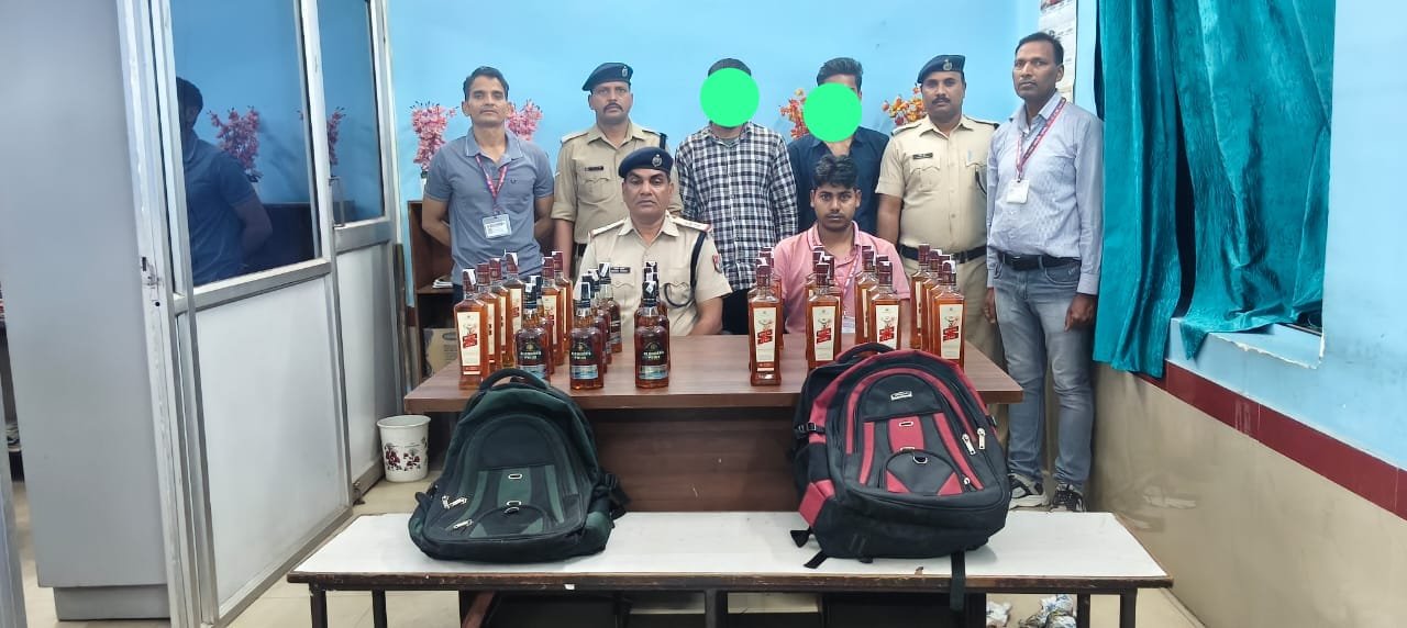 डिहरी आनसोन रोहतास। शनिवार को प्रभारी निरीक्षक रामविलास राम के निर्देशन में उप निरीक्षक मनोज कुमार साथ प्रधान आरक्षी रामबिलास, आरक्षी मनोज कुमार सिंह रेलवे सुरक्षा बल पोस्ट डेहरी ऑन सोन एवं सीपीडीएस टीम गया के उप निरीक्षक मुकेश कुमार साथ आरक्षी अमित कुमार व आरक्षी सुनील कुमार सभी संयुक्त रूप से रेलवे स्टेशन अनुग्रह नारायण रोड में गस्त एवं अपराधी गतिविधि निगरानी करते हुए प्लेटफार्म संख्या 03 पर स्थित ऊपरगामी पैदल पुल के रैंप पर 02 व्यक्तियों रौशन कुमार, उम्र करीब 19वर्ष, पिता बच्चू यादव, ग्राम अंगे थाना नारदीगंज, जिला नवादा (बिहार) एवं राहुल कुमार, उम्र 19 वर्ष, पिता प्रवीण सिंह, ग्राम रामपुर, थाना सूर्यगढ़, जिला लक्खीसराय बिहार को 02 पिट्ठू बैग में विभिन्न प्रकार के कुल 24 लीटर अंग्रेजी शराब के साथ पकड़ा गया । जिसे मौके पर ही सभी आवश्यक कार्रवाई करते हुए उक्त व्यक्ति के पास से बरामद अंग्रेजी शराब को जप्त कर दोनों व्यक्ति को गिरफ्तार किए एवं अग्रिम कार्रवाई हेतु राजकीय रेल थाना सोननगर को सुपुर्द किया गया।